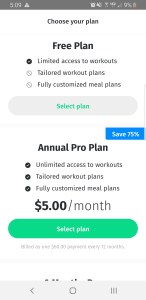 I had the option of the free plan that only included limited access to workouts (not much help for Keto recipes) and if you want access to everything you can pay $60 for this privilege. I am starting to see a trend though in this area of no free trials or previews. I am curious as to why since in many other realms this is a fairly normal practice to offer a free trial in some form or fashion to ensure that you are happy with your purchase.